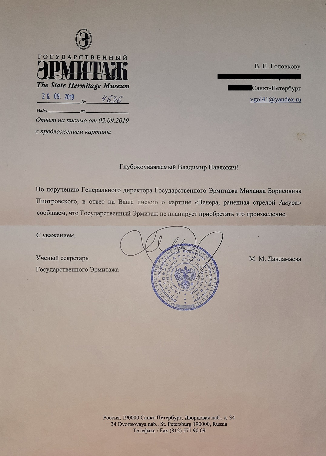 Ил. 39. Письмо из Эрмитажа от 26.09.2019