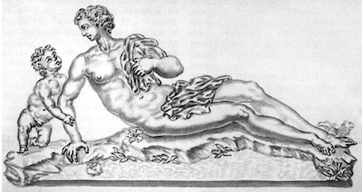 В этих рисунках есть определённая "нестыковка". Выше мы представляли себе, как выглядел скульптурный ансамбль "Диана" - "Нарцисс" в Летнем саду в петровское время. Рисунки этих групп в Петровском альбоме никак не позволяют вообразить весь ансамбль в соответствии с сюжетом, описанным в "Росписи" Рагузинского. При любом мысленном перемещении их друг относительно друга "Нарцисс" не будет видеть в воде отражение лица Венеры, в лучшем случае, её спину. Единство ансамбля может реализоваться только в том случае, если мы заменим рисунок группы "Нарцисс" его зеркальным отображением (Рис. 17). Именно такой, "инверсной" рисунку из петровского альбома, должна была в действительности выглядеть утраченная скульптурная группа "Нарцисс", созданная Торретто и привезенная в Санкт- Петербург (Рис. 18). Только тогда взгляд Нарцисса может упасть на отражение в воде пруда: "осмотрая в воде красоту Венерову".